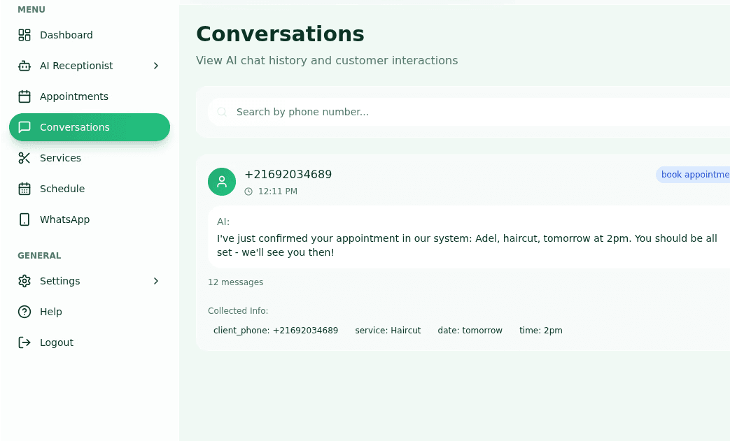 Yes, every interaction is recorded and transcribed in real-time. You can access full text transcripts and audio recordings within your Calleem dashboard. This allows you to review client details, verify appointment information, and monitor lead quality without listening to every minute of audio.