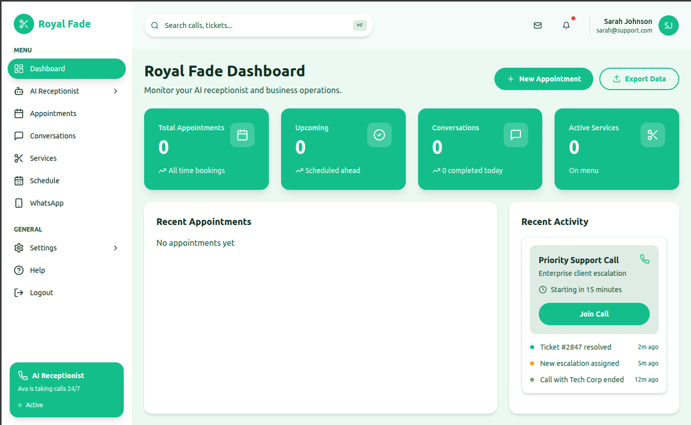 AI Receptionist Dashboard